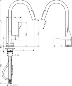 Axor Citterio – Keukenkraan Met Uittrekbare Vuistdouche En Schakelaar, Rvs Look 39862800