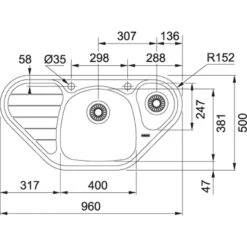 Franke Spark – Spoelbak SKX 651 E, 960×500 Mm, Rvs 101.0617.552
