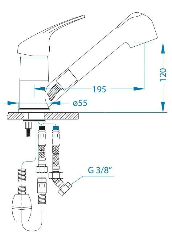 Eengreeps keukenkraan AM 20 met uittrekbare sproeikop en schakelaar