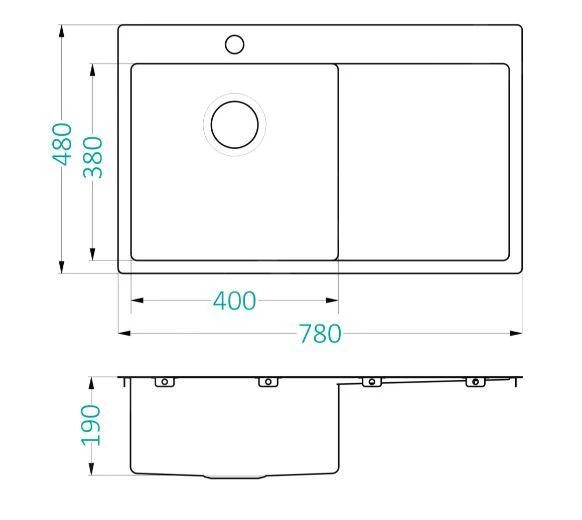 - afmetingen van de spoelbak400 x 380 x 190 mm