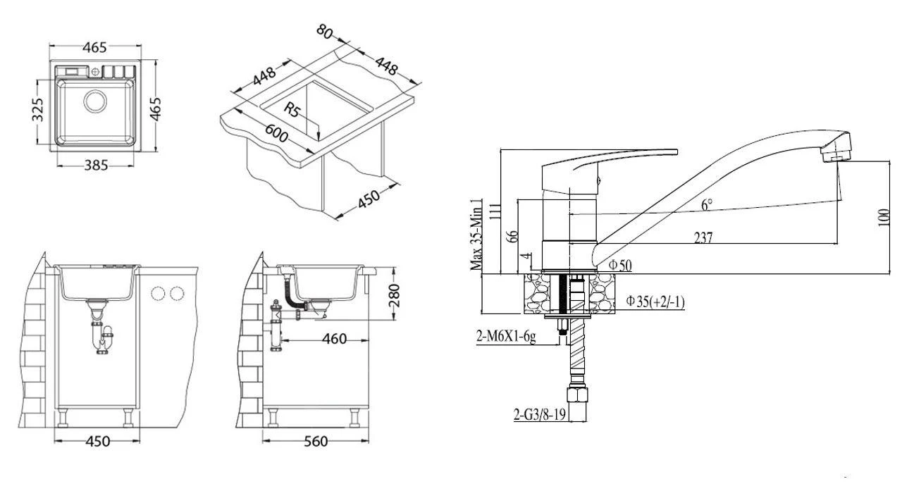 - afmetingen van de spoelbak 380 x 320 x 180 mm