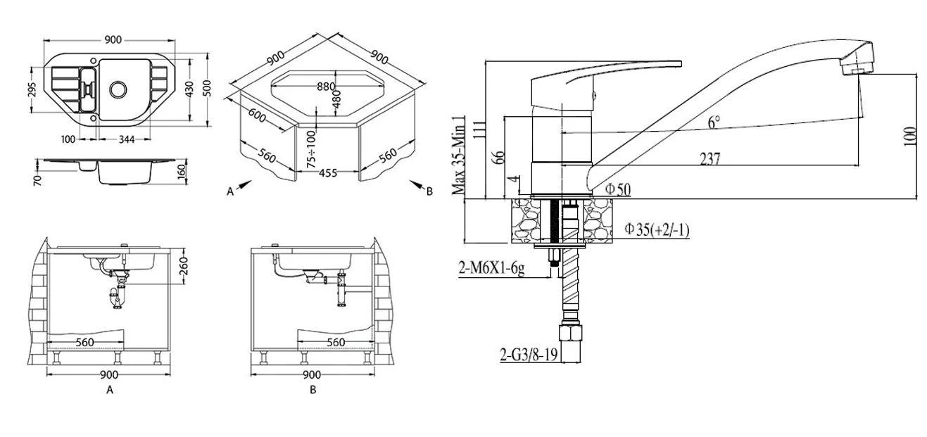 - afmetingen van de spoelbak 100 x 295 x 70 mm