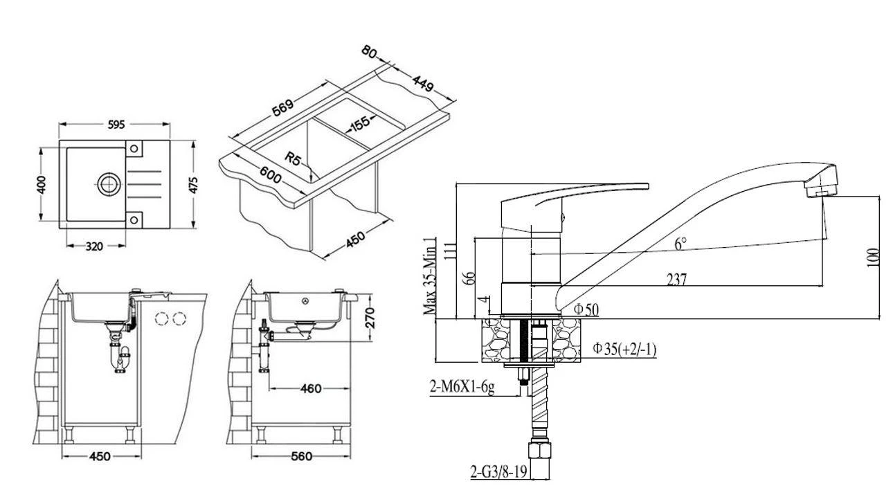 - afmetingen van de spoelbak 320 x 400 x 160 mm