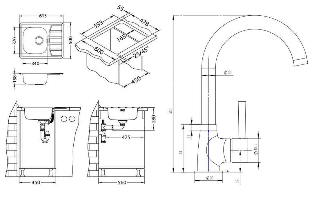 - afmetingen van de spoelbak 340 x 370 x 155 mm