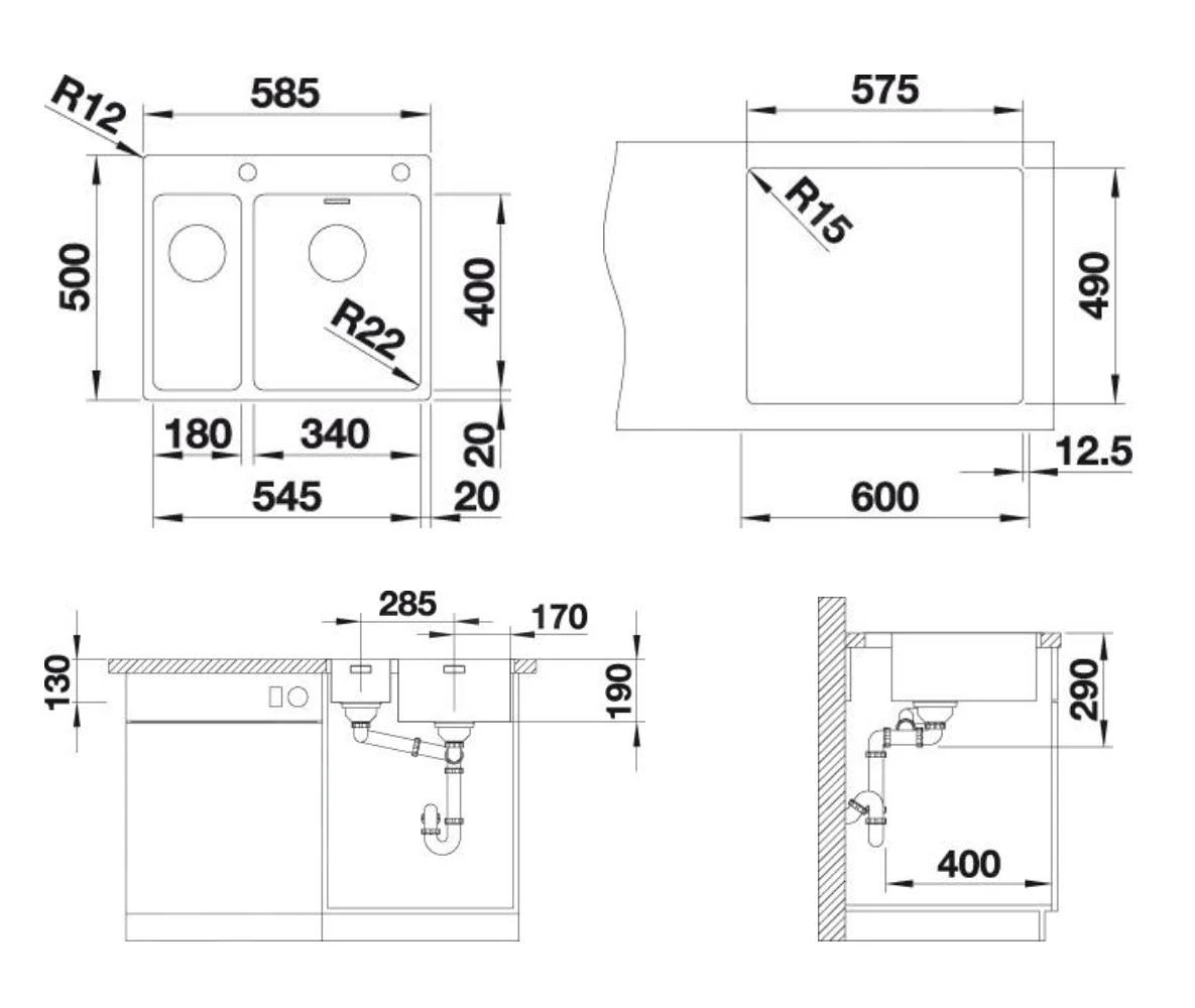 - afmetingen grote spoelbak: 340 x 400 x 190 mm (LxBxD)