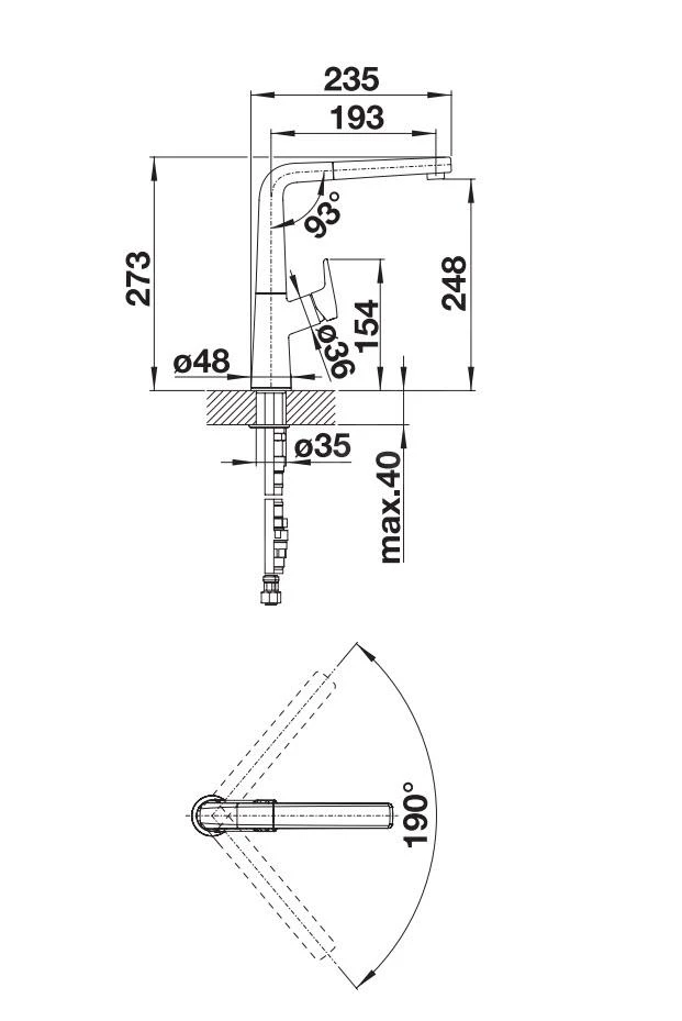 - draaibare uitloop, draaibereik 190°