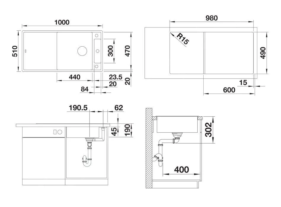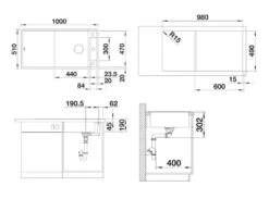 Spoelbak Axia III XL 6 S met glazen snijplank