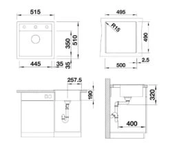 Spoelbak Dalago 5, met excentrische bediening (bedieningsknop voor de afvoer)