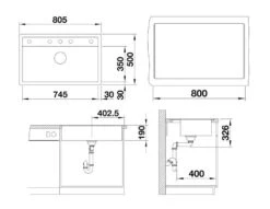 - afmetingen spoelbak 745 x 350 mm