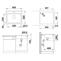 - totale afmetingen: 605 x 500 x 158 mm