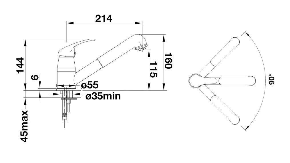 - kraanhoogte 160 mm