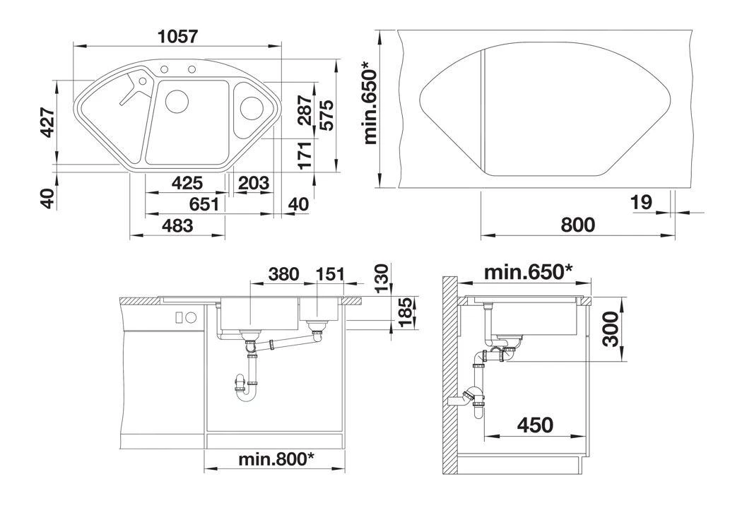 - diepte spoelbak 185 mm