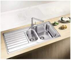 - enkelvoudige spoelbak met extra bakje en afdruipgedeelte