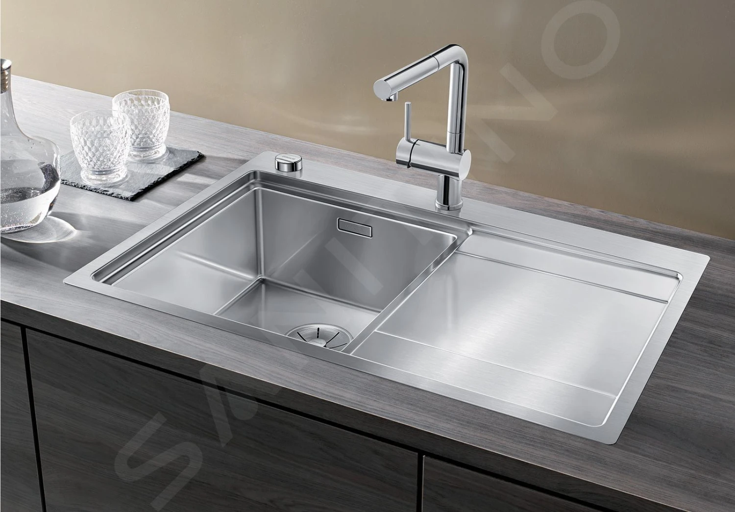 Dankzij het nieuwe ontwerp van de afvoerzeef is zowel handmatige als excentrische bediening mogelijk. Het systeem is eenvoudig te demonteren en te reinigen. Past zich perfect aan de bodem van de spoelbak aan.