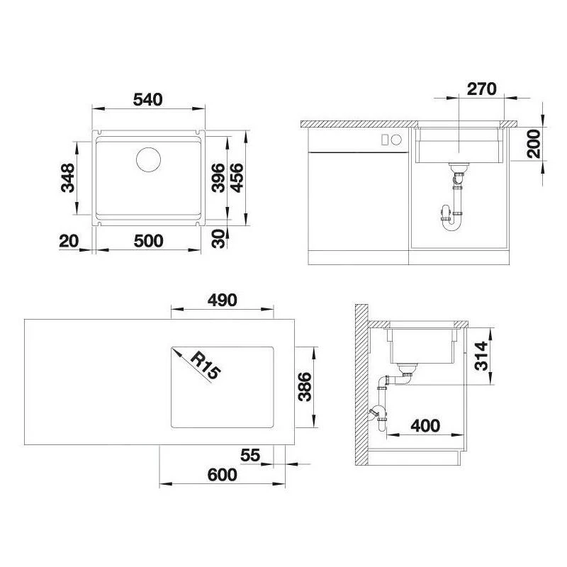 - enkelvoudige spoelbak zonder afdruipgedeelte
