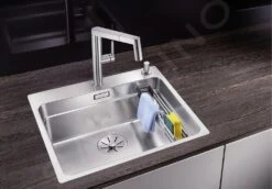 Met deze Blanco Etagon 500 spoelbak voeg je stijl en prestaties aan jouw keuken. Hij is gemaakt van premium kwaliteit materialen en staat hierdoor garant voor lange levensduur. De spoelbak beschikt over een trede voor Etagon schuifrails die een ander functioneel niveau in de gootsteen creëert – een perfecte plek voor potten of kommen of een extra opbergruimte.