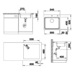 Deze spoelbak is ideaal om in een onderkast te worden geplaatst met een minimale breedte van 600 mm. De totale afmetingen zijn 540 x 500 mm. De afmetingen van de spoelbak zelf zijn 500 x 400 mm. De spoelbak is 190 mm diep. De spoelbak is voorzien van een hoogwaardige verborgen C-overflow® overloop en een stijlvolle InFino® afvoerzeef. De verpakking bevat verder twee Etagon-schuifrails, een afvoerset met een ruimtebesparende sifon en een bevestigingsset.