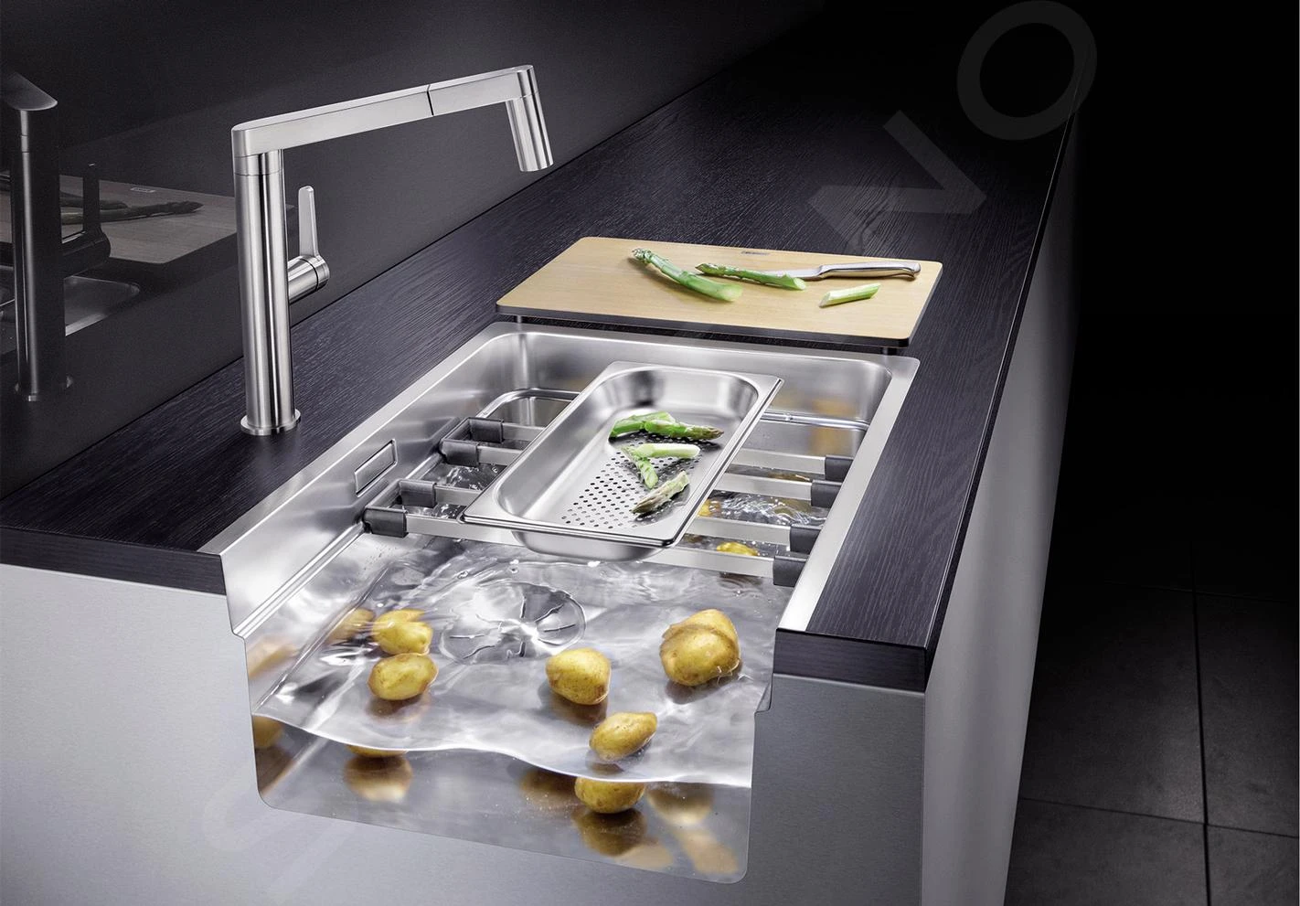 Kies voor deze BLANCO Etagon 700 spoelbak en geniet van ultieme functionaliteit en hoogwaardig design. Dankzij het extra niveau en de ETAGON rails krijg je vrijwel onbeperkte toepassingsmogelijkheden. Afwasborstels, keukensponzen, vaatdoeken – alles kan optimaal uit het zicht worden opgeborgen, terwijl het toch vlak bij de hand blijft.