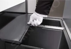 De set bevat ook een praktisch deksel. Deze Blanco Flexon II inbouw afvalbak is gemaakt van hoogwaardig kunststof dat gemakkelijk te onderhouden is. Tegelijkertijd is het nauwkeurig gemaakt. Hij is eenvoudig te monteren en past perfect in de onderkast. Het is erg belangrijk dat je hem in een kast plaatst met een breedte van 600 mm en een diepte van 400 mm. De inbouwhoogte van de mand is 360 mm boven de bodem van de kast, de maximale hoogte van de zijkant van de kast moet 265 mm boven de bodem zijn.