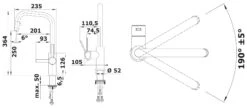 - draaibare uitloop, draaibereik 190°