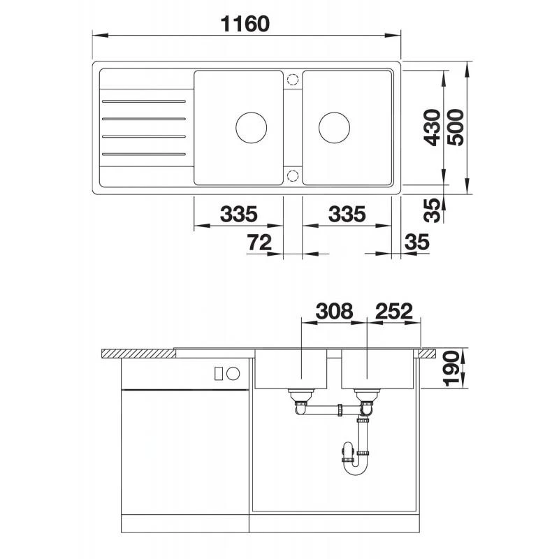 - afmetingen beide spoelbakken 335 x 430 mm