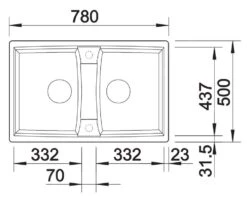 - afmetingen spoelbakken 2x 332 x 437 mm