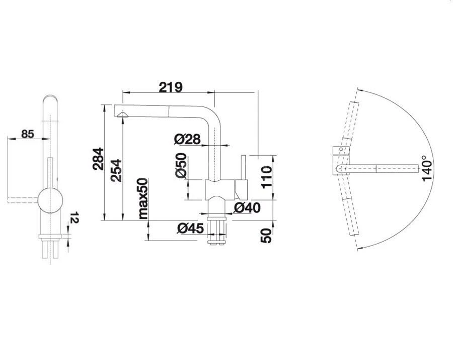 - draaibare uitloop, draaibereik 140°