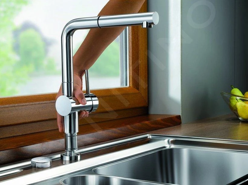 Ben je op zoek naar een keukenkraan geschikt voor montage onder een raam? Maak dan kennis met deze Linus S-F keukenkraan van BLANCO die speciaal voor onder het raam is gemaakt. Het principe is eenvoudig – je trekt het kraantje omhoog en legt het op zijn kant. Je kunt het raam dan gerust wijd openzetten. Er is een afstand van minimaal 45 mm nodig tussen de spoelbak en het raamkozijn.