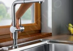 Eéngreeps keukenkraan voor plaatsing voor het raam
