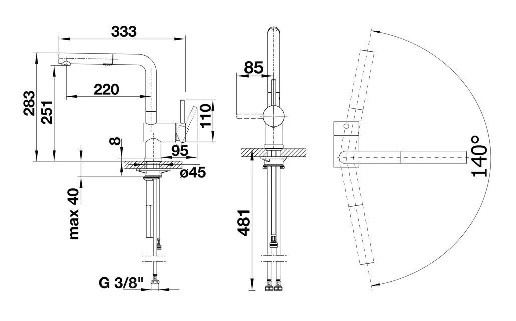 - kraanhoogte 283 mm