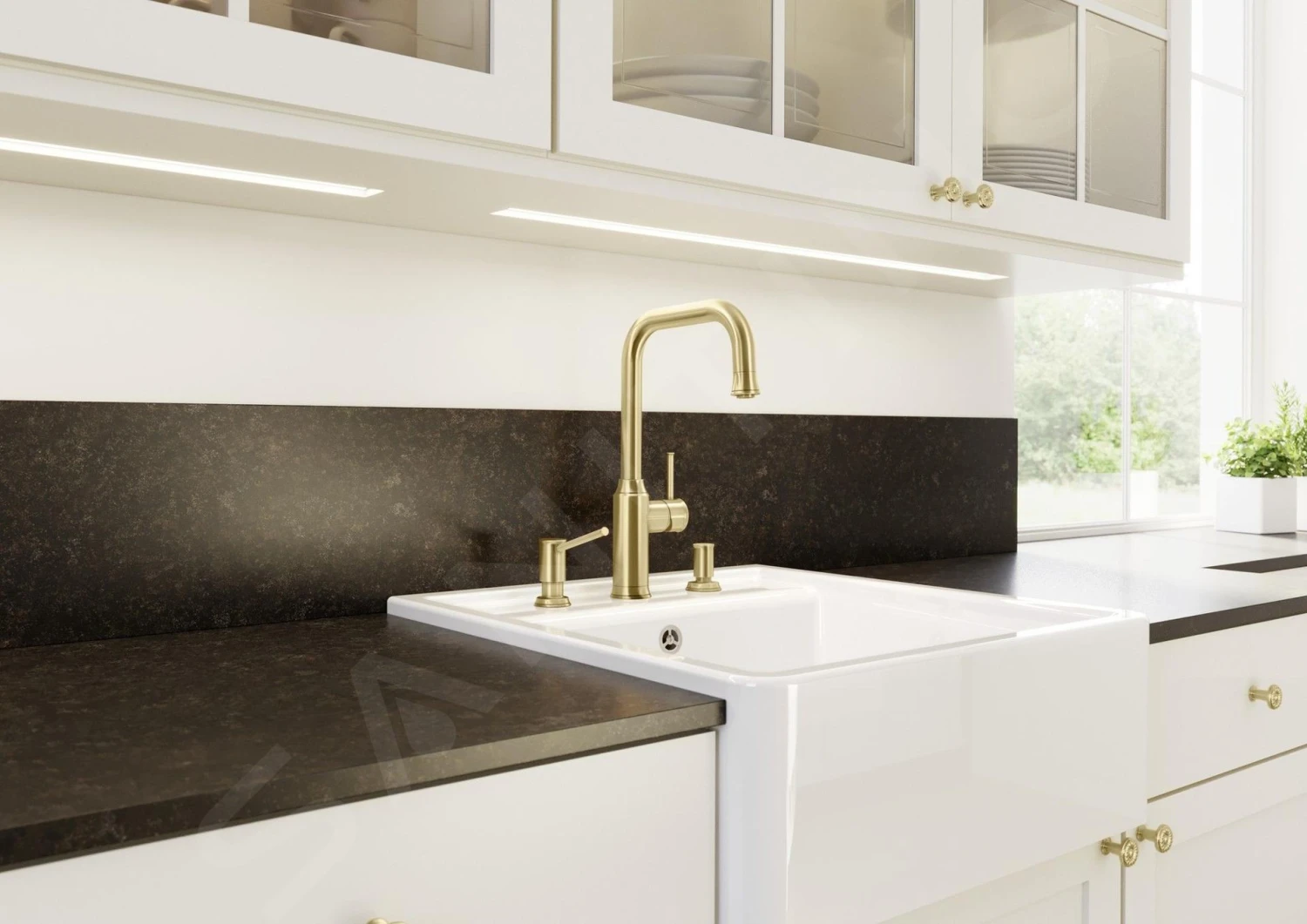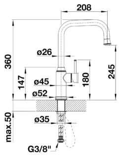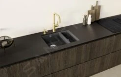 - de kraan is geschikt voor spoelbakken die onder het werkblad zijn ingebouwd, waar ook een afwasmiddeldispenser en afvoerregelstang kunnen worden aangeschaft