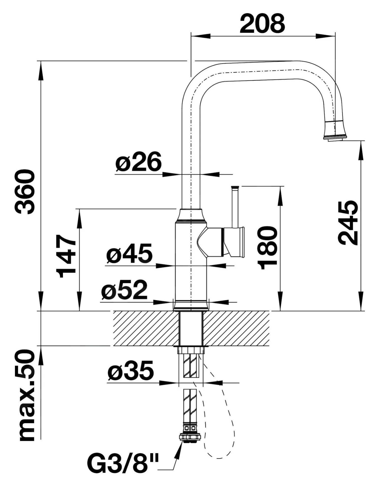 - 3/8 moer voor eenvoudige en veilige montage