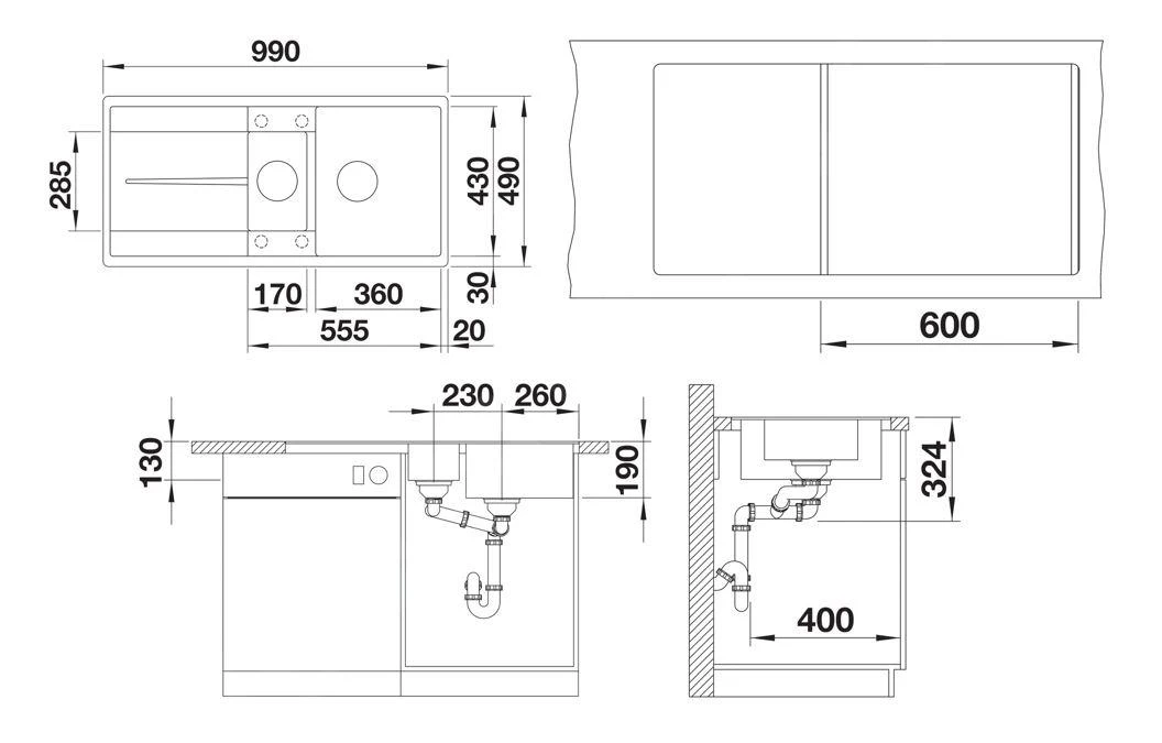 - diepte spoelbak 190 mm