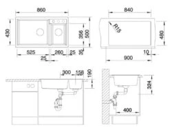 - diepte spoelbakken 190 mm