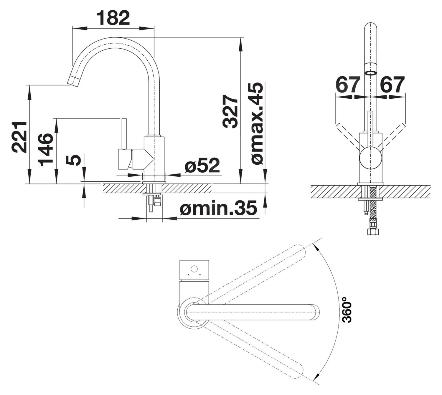 - draaibare uitloop, draaibereik 360°