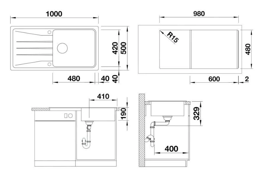 - afmeting spoelbak 480 x 420 mm