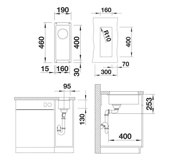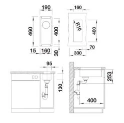 - afmeting spoelbak 160 x 400 mm