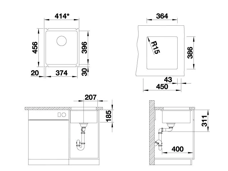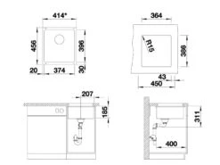 - afmetingen spoelbak 374 x 396 mm