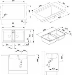 - afmetingen spoelbakken 2x 375 x 450 mm