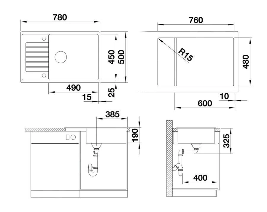 Spoelbak Zia XL 6 S Compact, dubbelzijdige uitvoering