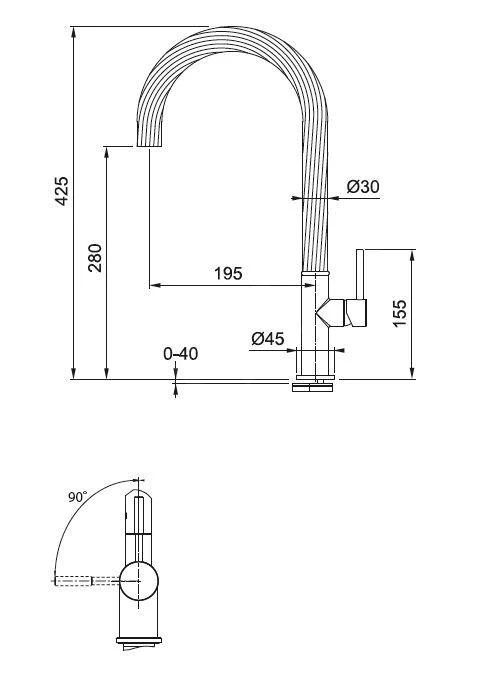 - hoogte uitloop 425 mm