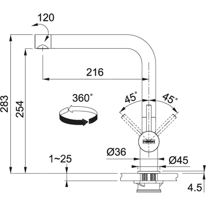De kraan bevindt zich in een aflopend afdruipgedeelte, hoge kranen staan iets schuin.