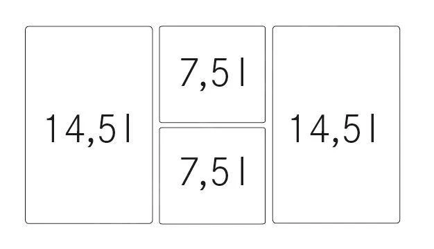 - inhoud: 2 ×14,5 l en 2 × 7,5 l