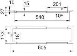 - afmeting 173 × 605 × 27 mm,
