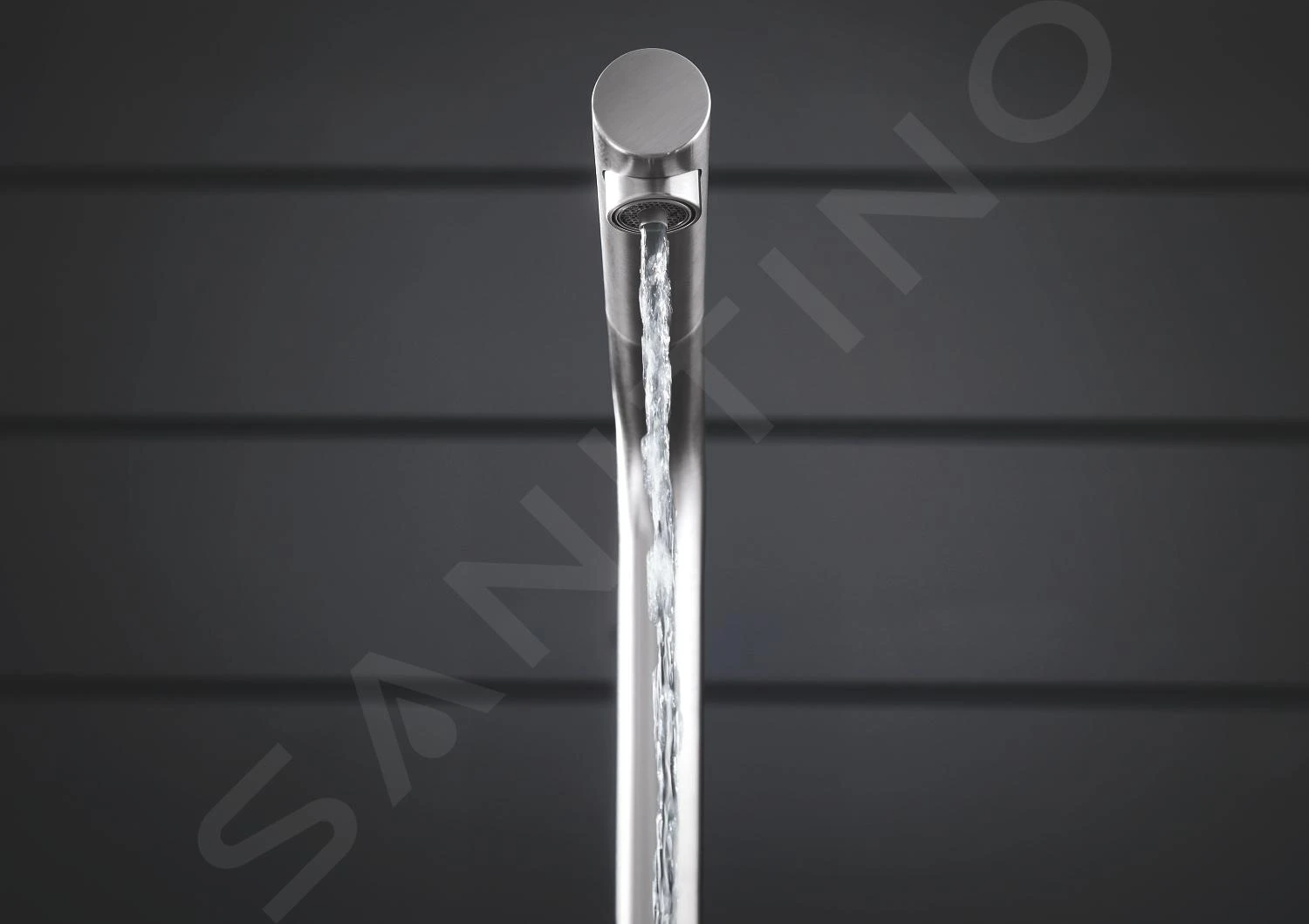 De GROHE Blue kraan verandert gewoon kraanwater in puur, niet-bruisend tafelwater, dat dankzij de intelligente filtertechnologie volkomen veilig en uitstekend van smaak is. Het water stroomt door het filter dat alle ongewenste stoffen opvangt, zoals chloor en zware metalen, die een onaangename geur kunnen veroorzaken of de smaak van het water beïnvloeden. Het fijne deeltjesfilter vangt ook de kleinste stofjes op, waardoor het water puur en heerlijk fris van smaak is. Ook vermindert het filter de hardheid van het water. Het kan bovendien snel en simpel worden vervangen. Zo is er altijd direct uit de kraan vers water zonder ongewenste stoffen beschikbaar, dat ook geschikt is voor gebruik in keukenapparatuur. Ook koffie en thee gezet met het gefilterde water zijn voller en geraffineerder van smaak.
