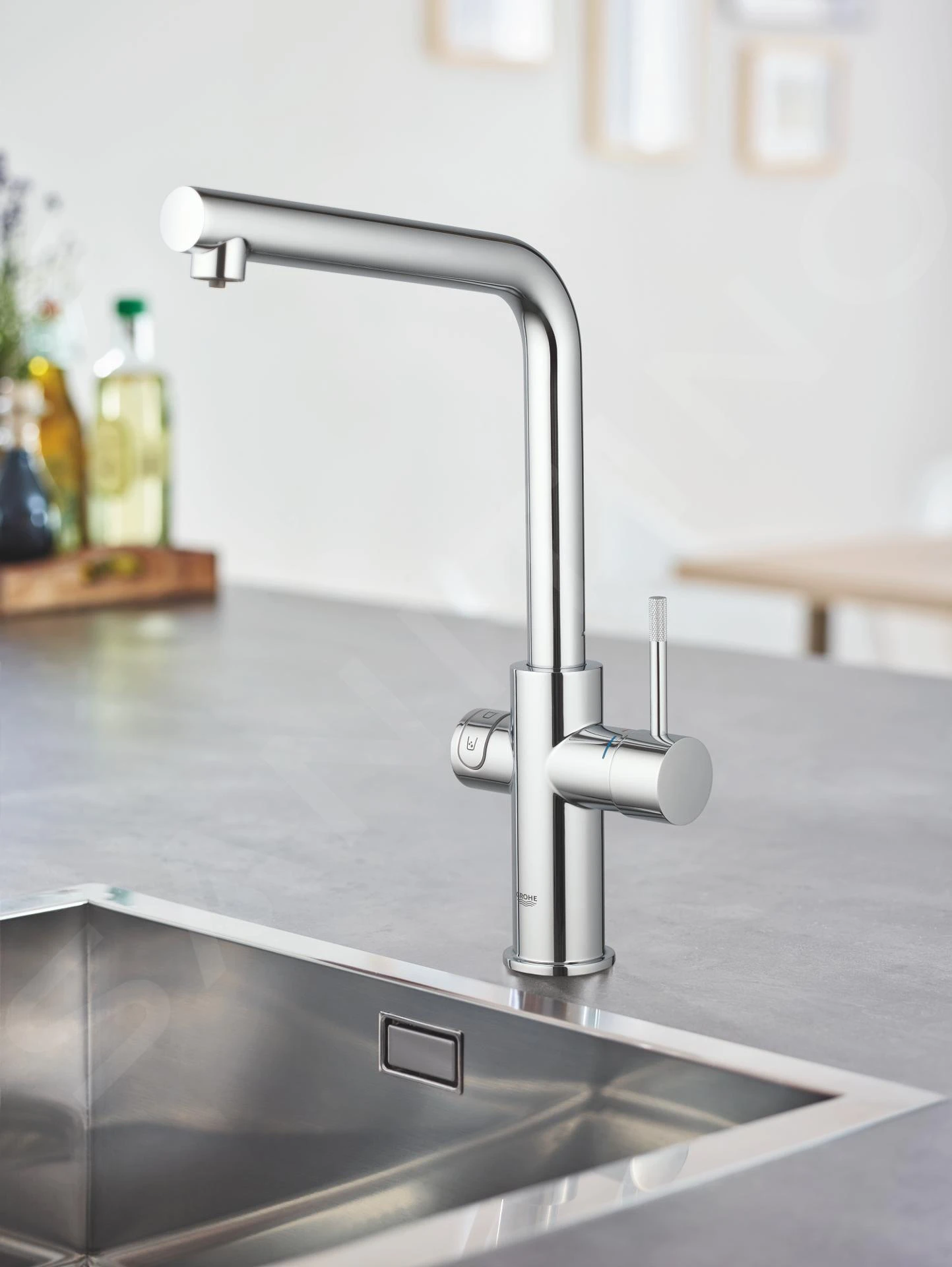 De GROHE Blue Home Duo kraan levert zowel gewoon als gefilterd water