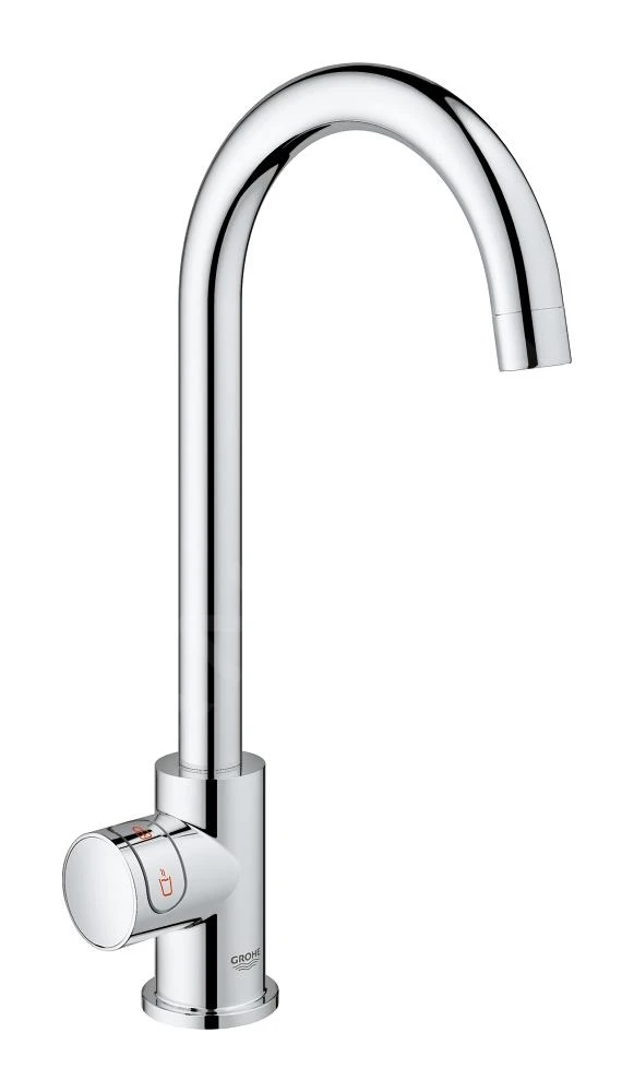 GROHE RED Mono keukenkraan (C-vormige uitloop) met filterset en boiler in maat M voor ogenblikkelijk kokend water. Verchroomde afwerking.