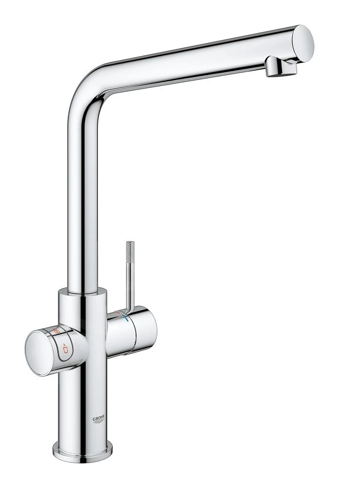 GROHE RED Duo keukenkraan (L-vormige uitloop) met filterset en boiler in maat L voor ogenblikkelijk kokend water. Verchroomde afwerking.