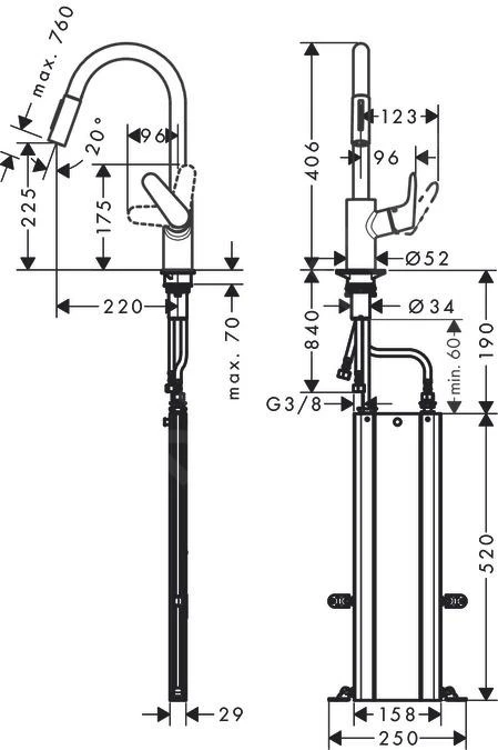 - montagewijze: aanvoerslang G 3⁄8