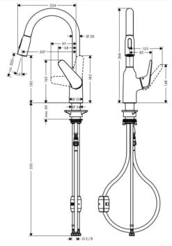 Focus M42 keukenmengkraan met uittrekbare vuistdouche, 2jet
